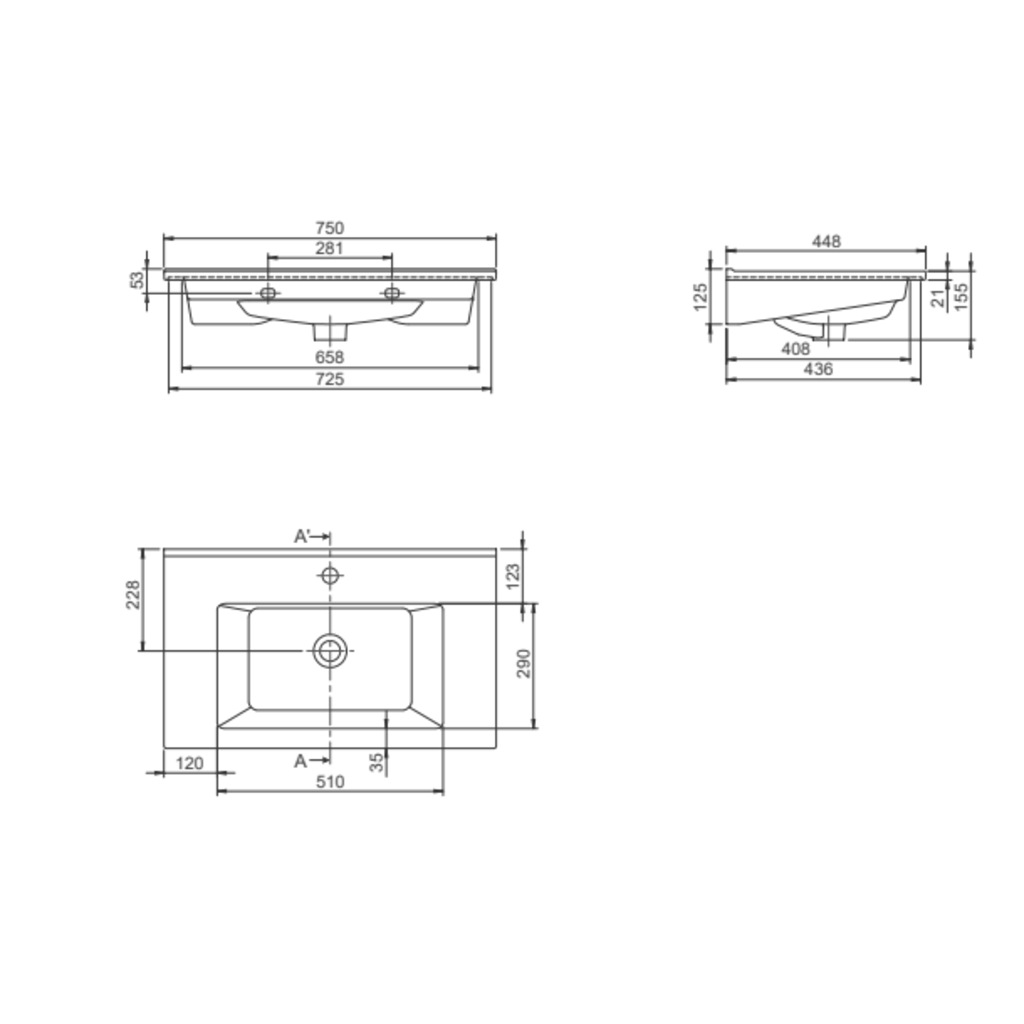 047400 Turkuaz Arte Plus 75x45 cm Etejer Uyumlu Lavabo