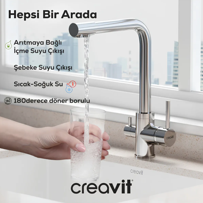 Creavit İçme Suyu Çıkışlı Eviye Bataryası DW8700