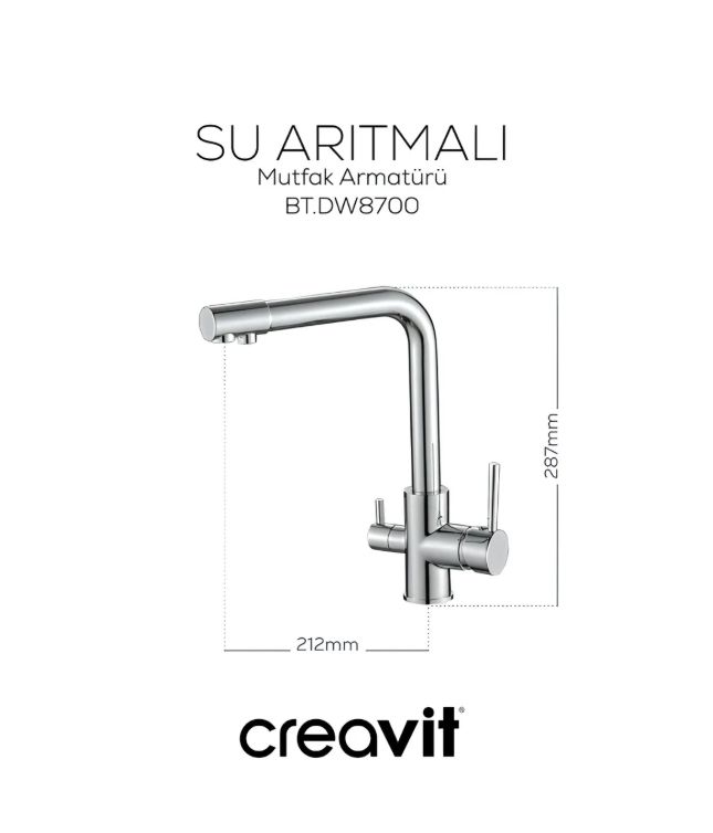 Creavit İçme Suyu Çıkışlı Eviye Bataryası DW8700