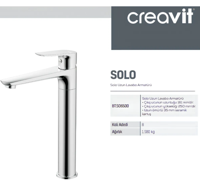 Creavit Solo Krom Uzun Lavabo Bataryası SO6500