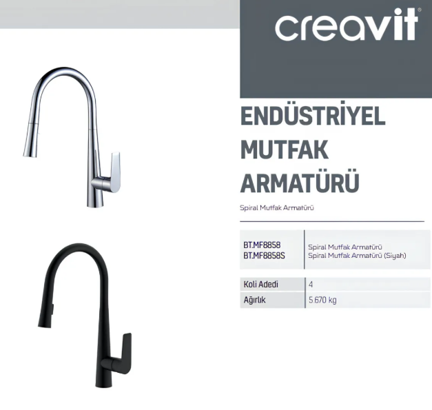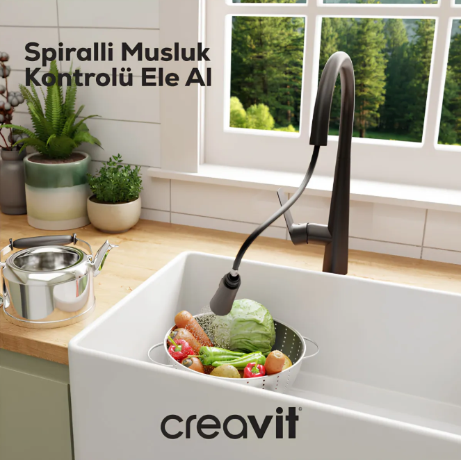 Creavit Spiralli Siyah Mutfak Bataryası Mf8858S