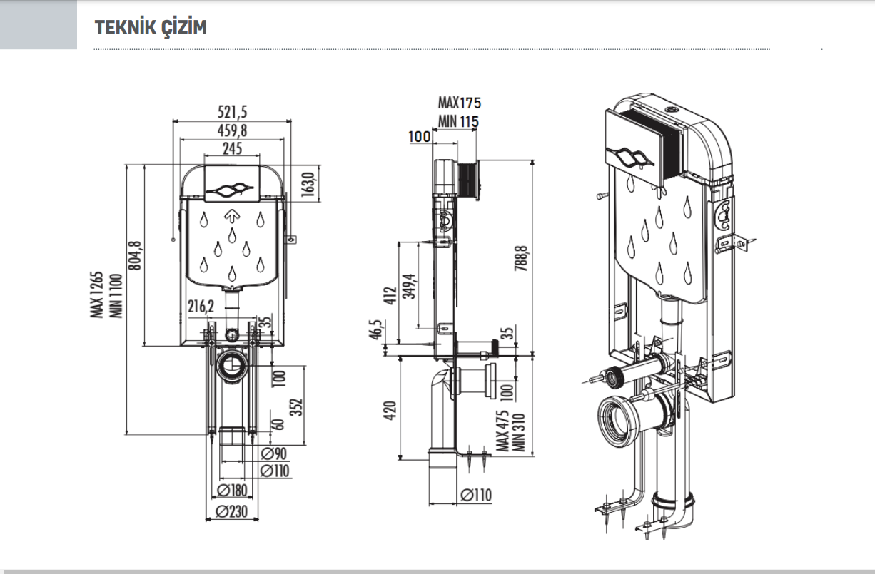 Asma Klozet İçin Metal Ayaklı 3-6 L Gövde
