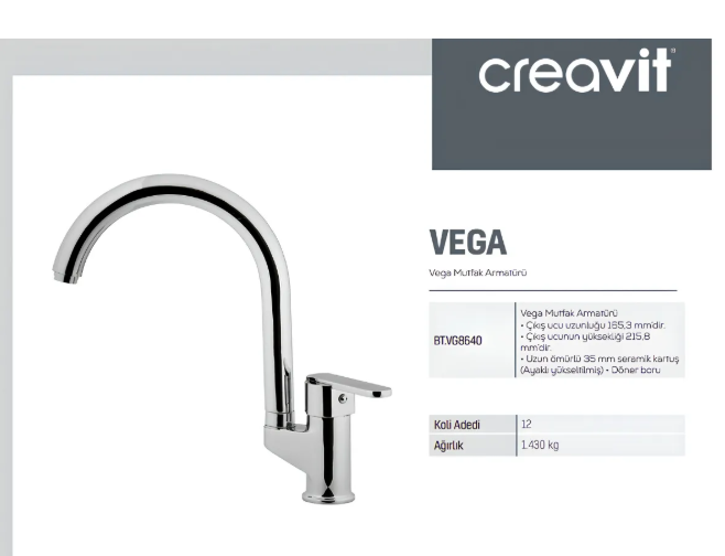 Creavit Vega Krom Eviye Bataryası Vg8640