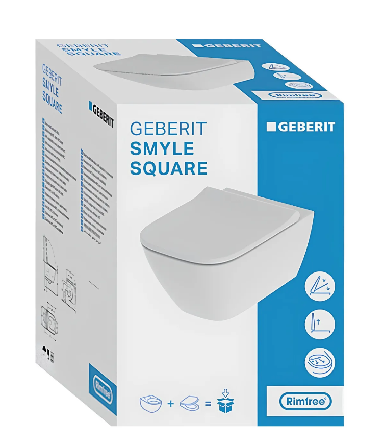 Geberit Smyle Square Rimfree Asma Klozet,Geberit Yavaş Kapak 501.668.00.1