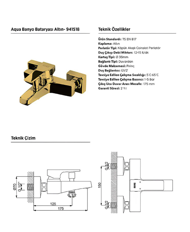 Newarc Aqua Altın Banyo Bataryası 941518