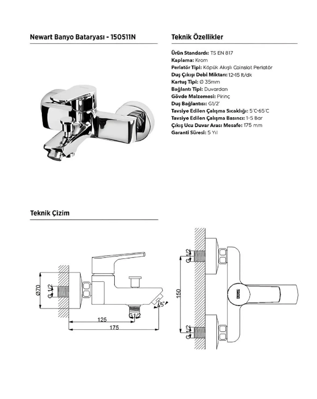 Newarc Newart Krom Banyo Bataryası,150511N