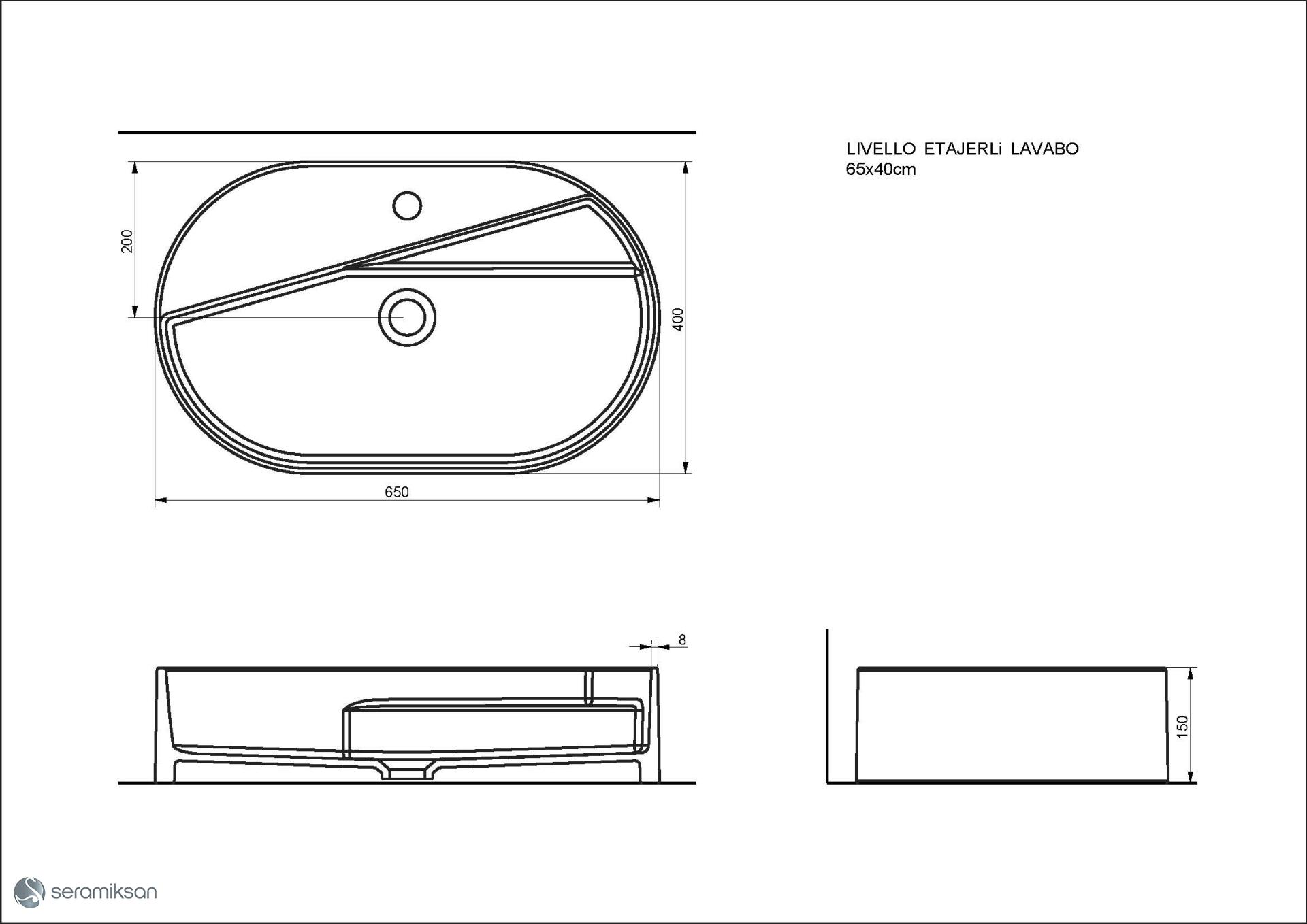 Seramiksan Livello Tezgah üstü Yuvarlak Batarya Delikli Lavabo 65 Cm