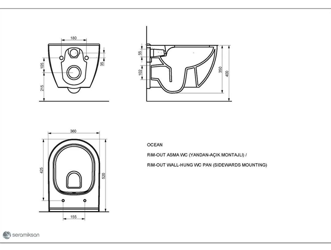 Seramiksan Ocean Plus Rim-Out Açık Montaj Asma Klozet ve Yavaş Kapanan Kapak