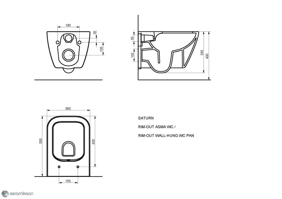 Seramiksan Saturn Kanalsız Asma Klozet, Seramiksan Duroplast Yavaş Kapak (Cappuccıno)