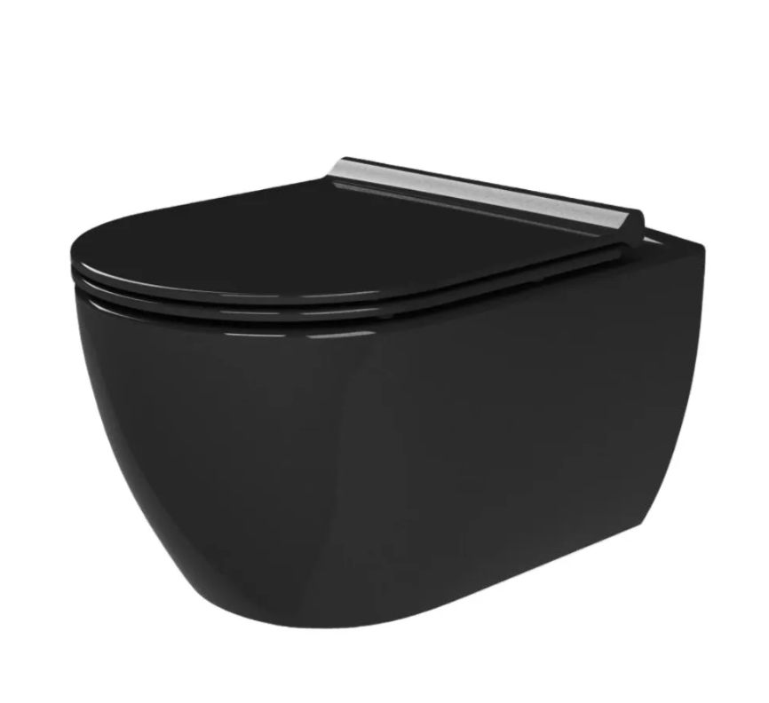 TURKUAZ City Kanalsız Mat Siyah Asma Klozet SET002073, Turkuaz City Mat Siyah Yavaş Kapak