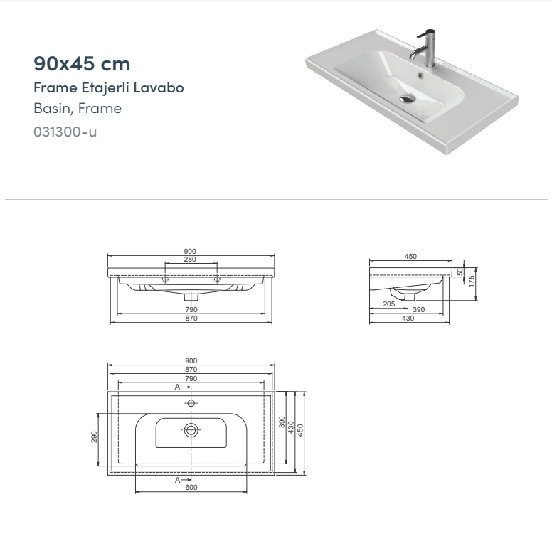 Turkuaz Frame 90 x 45 cm Etejer Uyumlu Lavabo