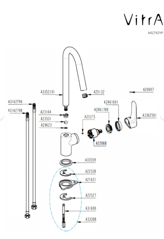 Vitra Artema Root Round A42742 Eviye Mutfak Bataryası, Krom