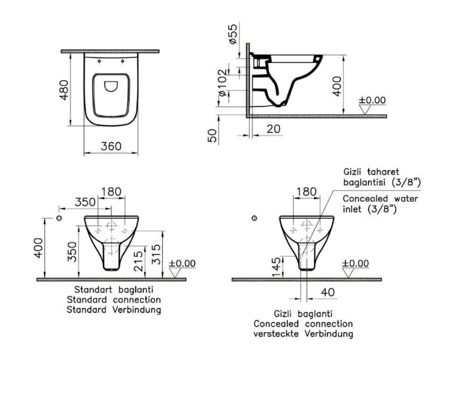 Klozet Adı : Vitra S20 Asma Klozet 5505L003-0868