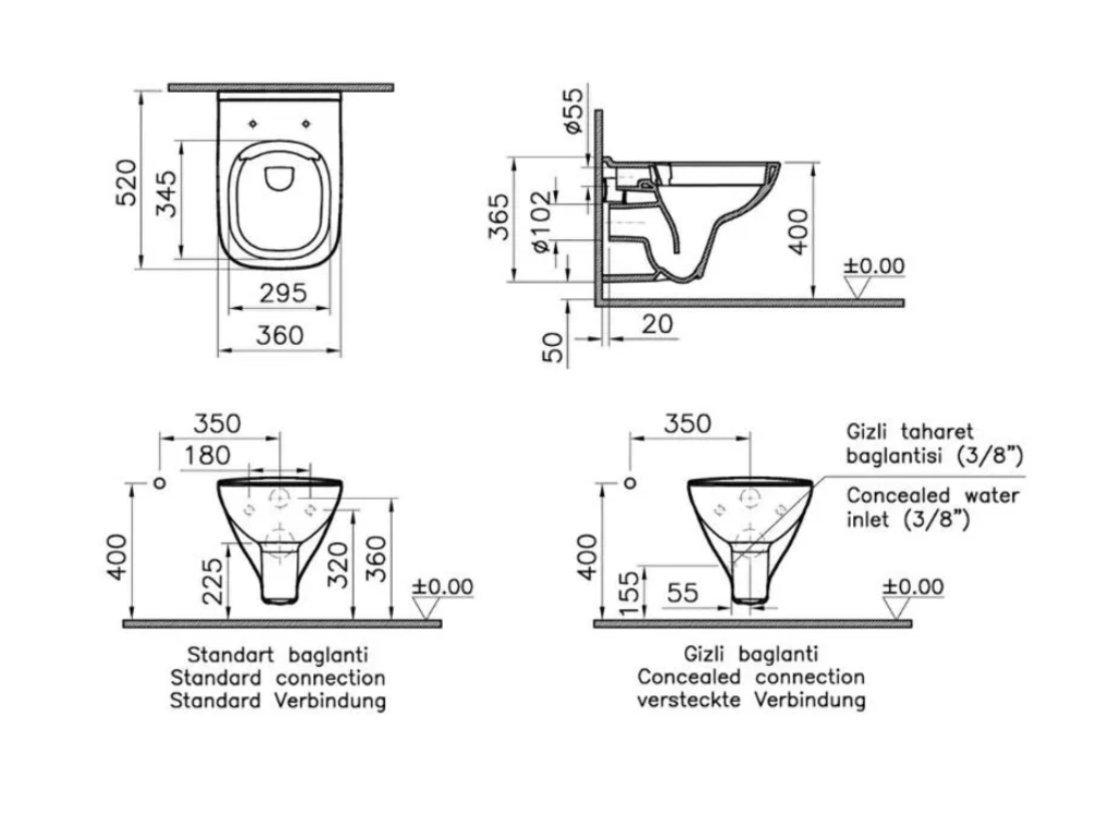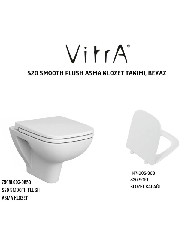 VitrA S20 Smooth Flush Asma Klozet 7508L003-0850, Vitra S20 Soft Klozet Kapağı 147-003-909